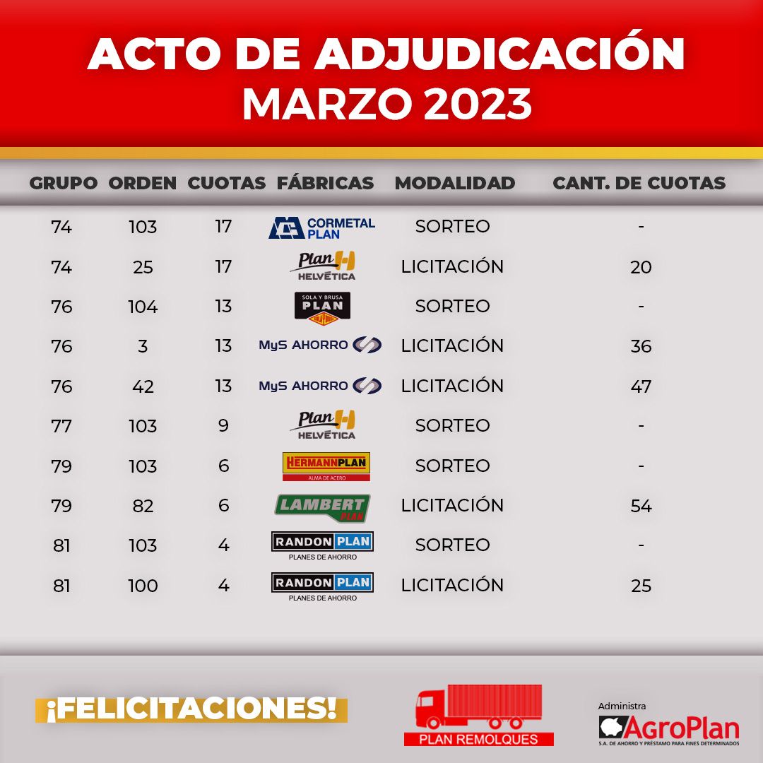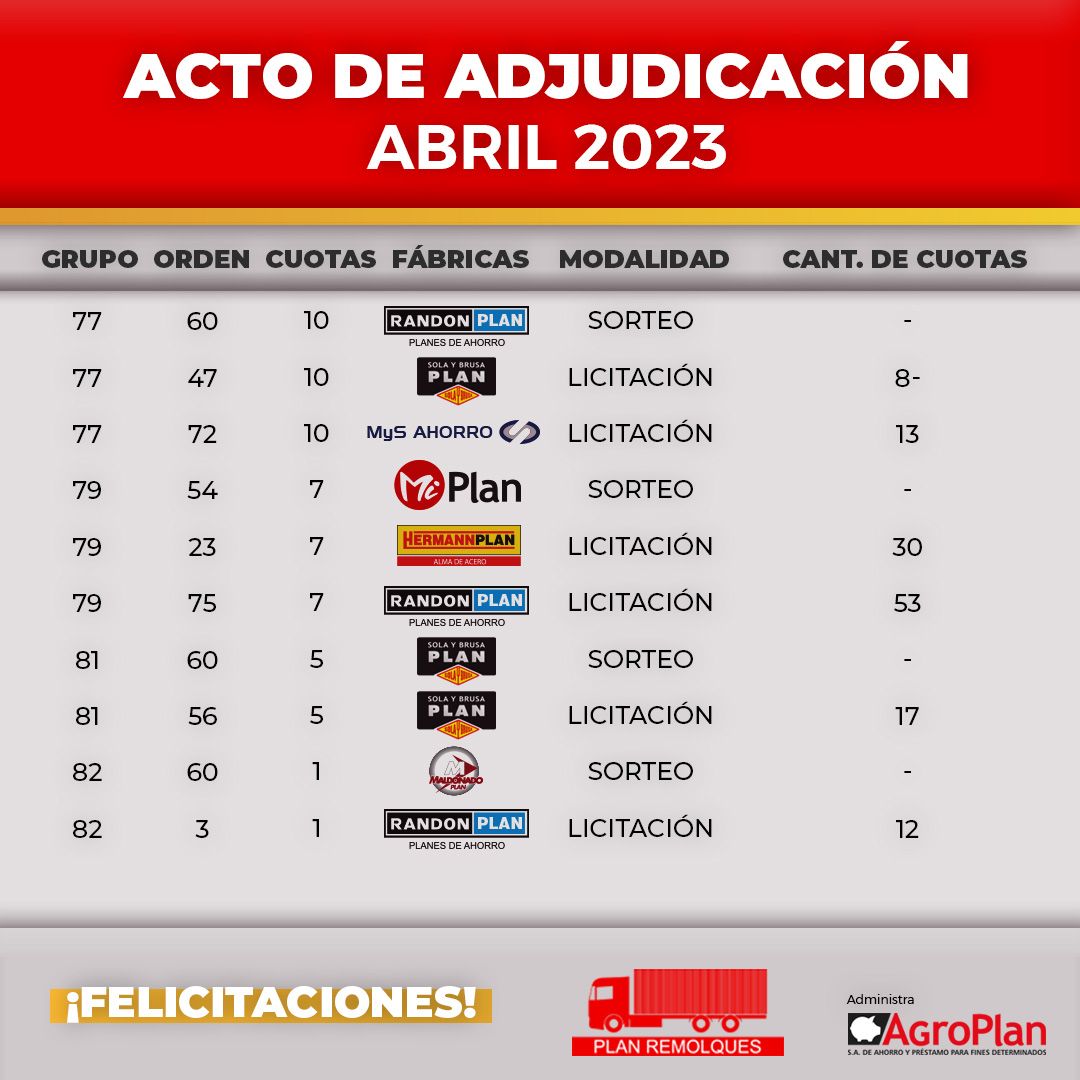 Entrega de unidad adjudicada por Ast-Pra Plan