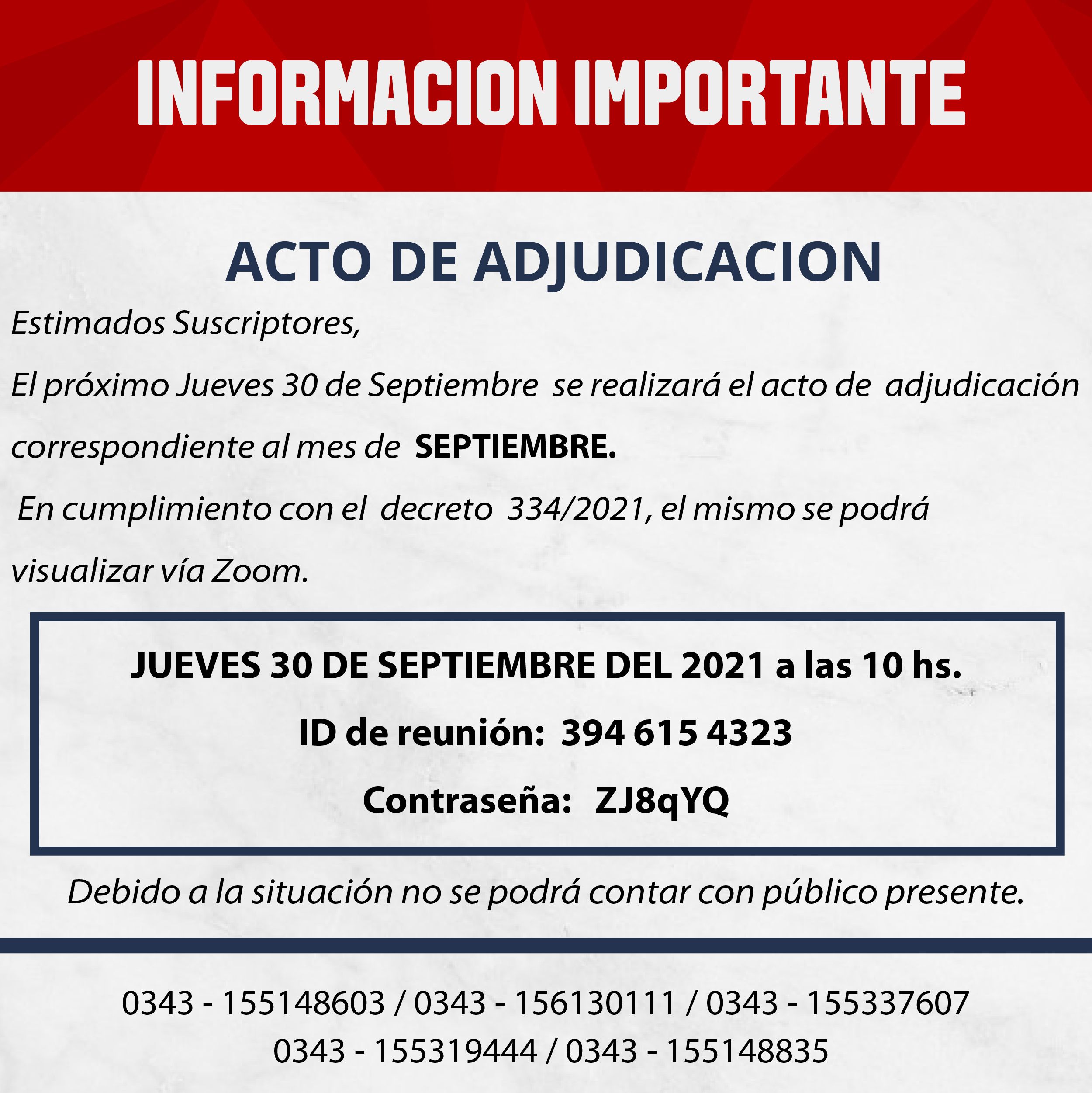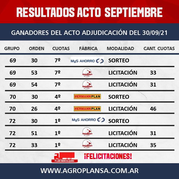 Resultados del acto de adjudicación SEPTIEMBRE 2021.