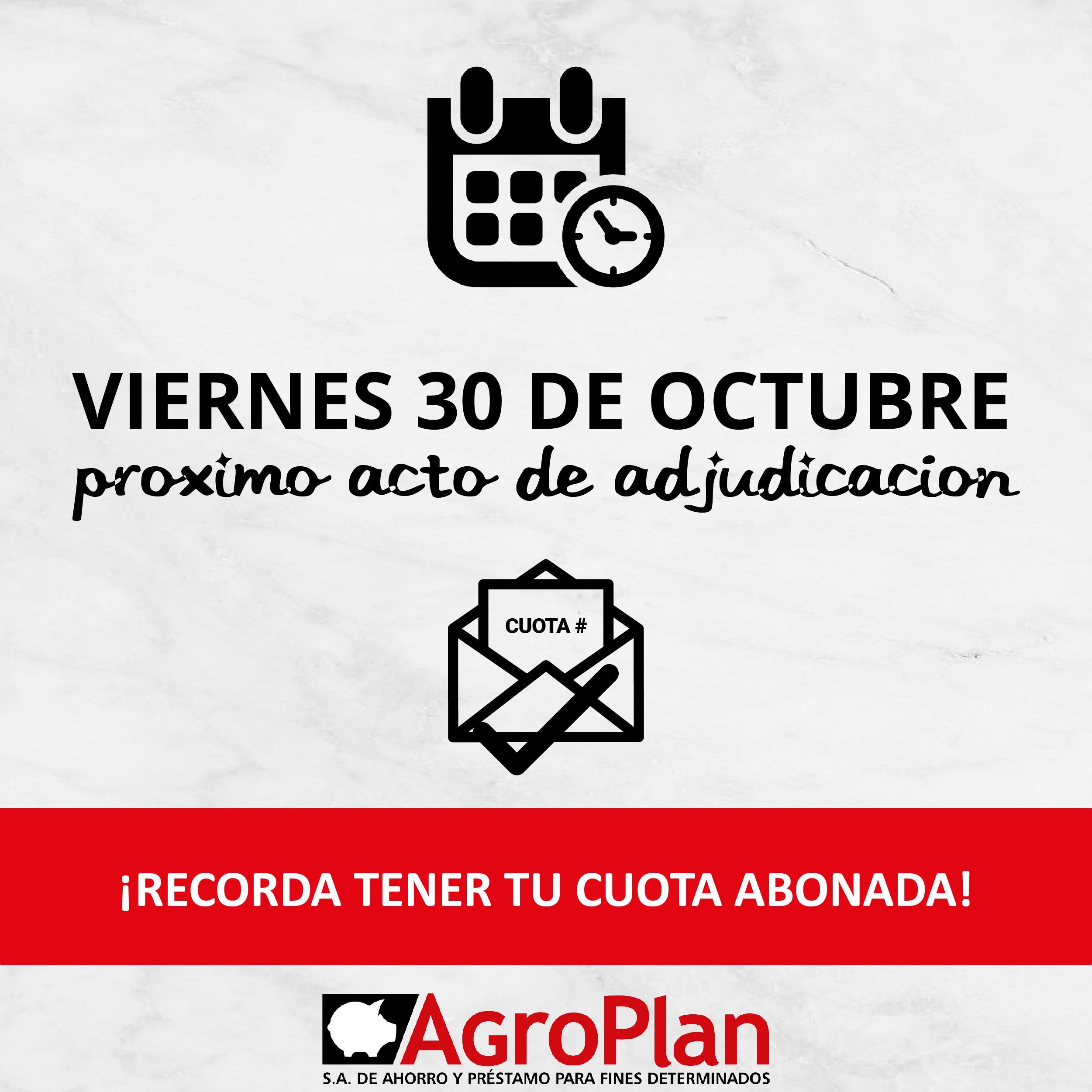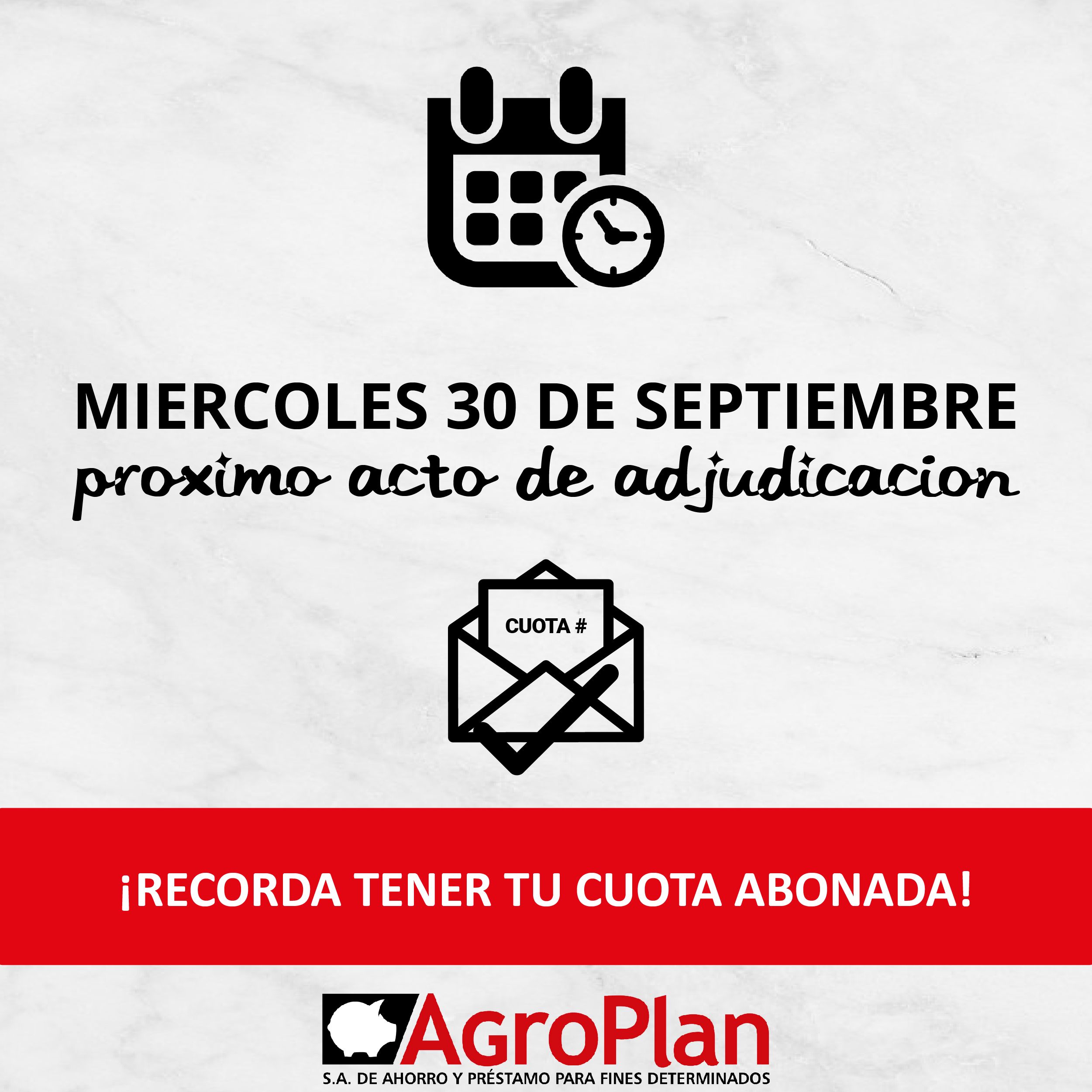 📆 Agendá la fecha del próximo acto de adjudicación! ✔️ Con tu cuota al día participas del Sorteo.
