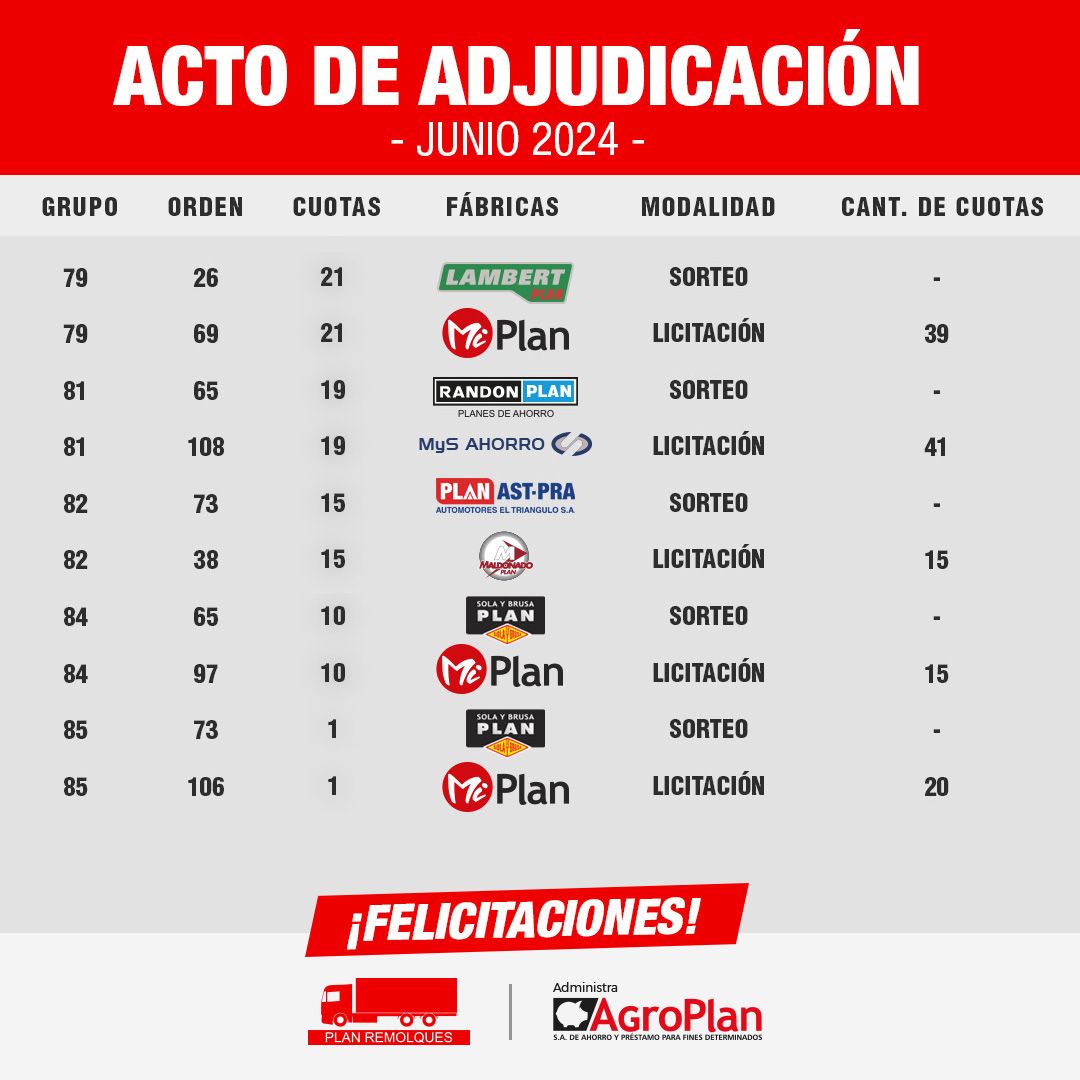 Entrega de unidad adjudicada por Sola y Brusa Plan