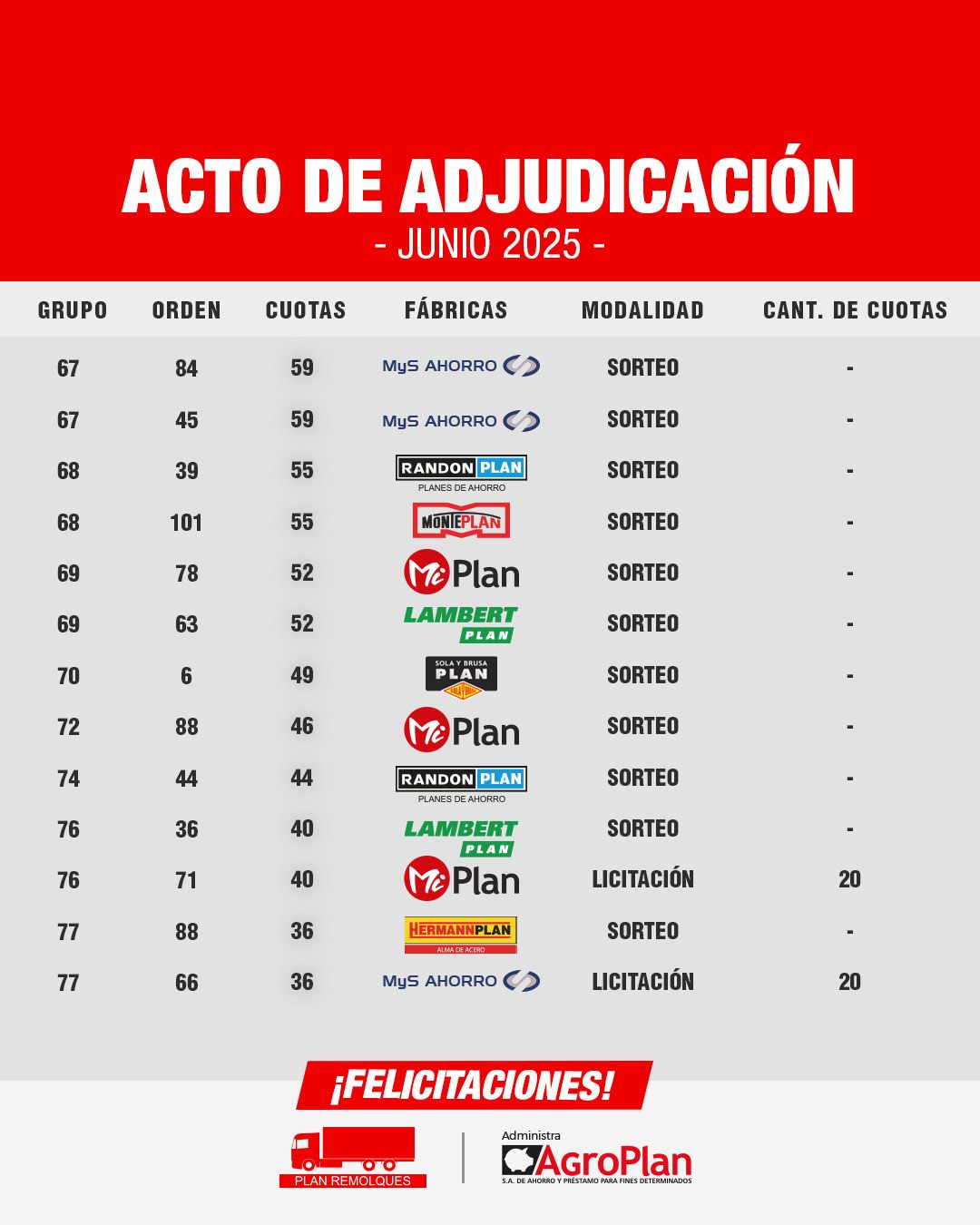 Entrega de unidad adjudicada por Sola y Brusa Plan