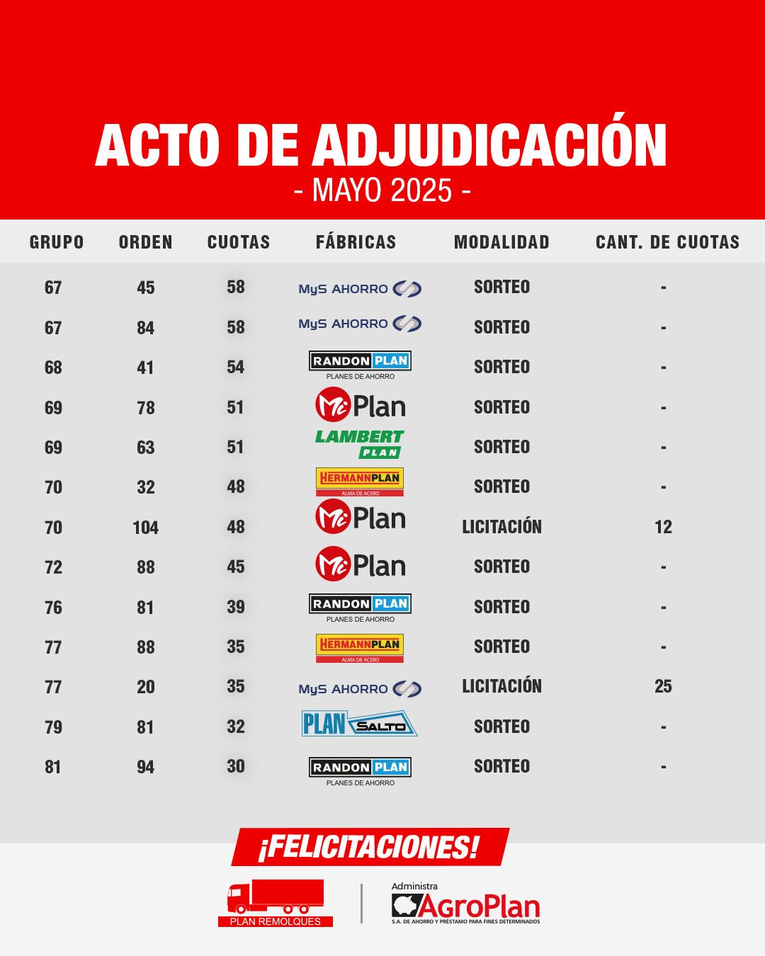 Entrega de unidad adjudicada por Sola y Brusa Plan